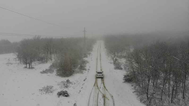 Eskişehir’in yüksek kesimlerinde sabah saatlerinde etkili olan şiddetli kar yağışı nedeniyle beyaza bürünen yollar ve ağaçlık alanlar drone ile havadan görüntülendi.