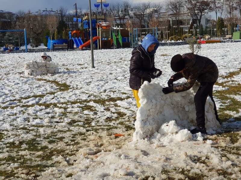Kar yağışı çocuklara yaradı