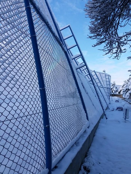 Kar yağışı sonucu halı sahanın koruma telleri çöktü
