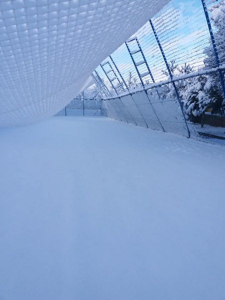 Kar yağışı sonucu halı sahanın koruma telleri çöktü