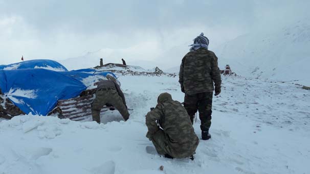 Tipi ve fırtına dolayısıyla yere düşen kar yüksek yerlerden savrulurken, tipi ve fırtınanın etkili olmadığı yerlerde yer yer kar kalınlığı yarım metreye kadar çıktı. Kar altında kalan Kato Dağı’nda teröristlere geçit vermeyen Mehmetçik, çetin kış şartlarına rağmen operasyonlarını aralıksız sürdürüyor.