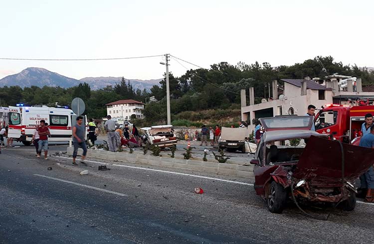 Muğla'nın Seydikemer ilçesinde iki otomobil kafa kafaya çarpıştı. Otomobillerden biri ortadan ikiye bölünürken, kazada 4 kişi yaralandı.