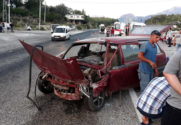 Muğla'nın Seydikemer ilçesinde iki otomobil kafa kafaya çarpıştı. Otomobillerden biri ortadan ikiye bölünürken, kazada 4 kişi yaralandı.