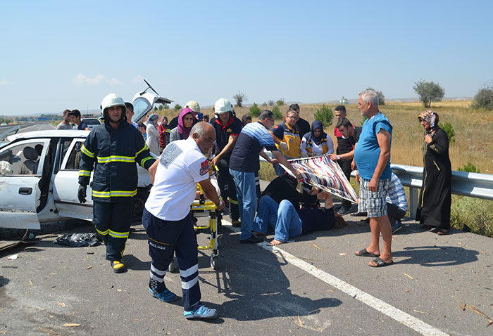 Kütahya'da, seyir halindeyken devrilen kamyondaki tomrukların bir otomobilin üzerine düşmesi sonucu 4'ü ağır 8 kişi yaralandı.
