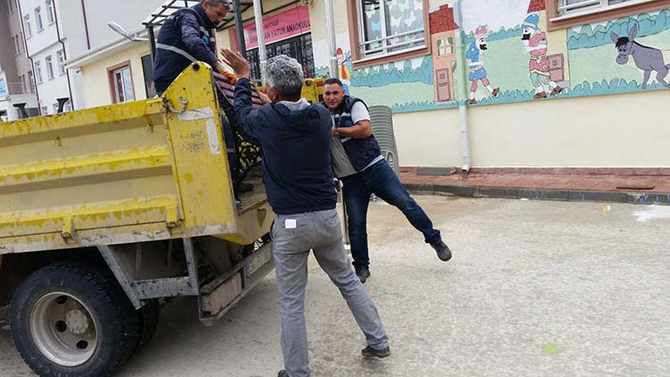 Odunpazarı Belediyesi, Seyitgazi’den gelen istek doğrultusunda okula bank, kamelya ve oyun grubu yaptı. Belediye malzemeleri yerleştirdi, çocuklar üç gün kullandı.