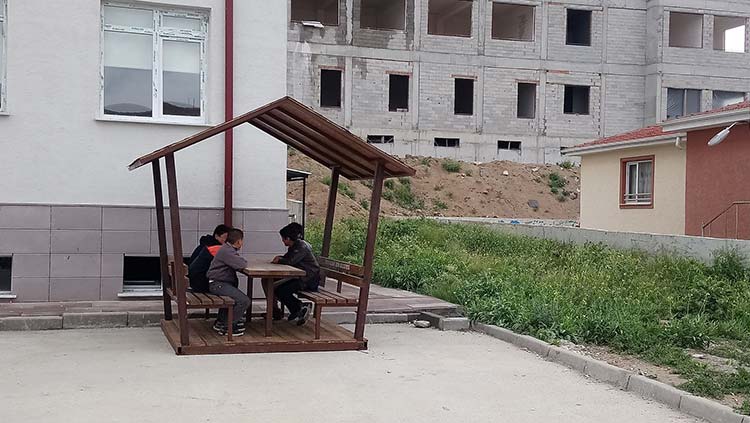 Odunpazarı Belediyesi, Seyitgazi’den gelen istek doğrultusunda okula bank, kamelya ve oyun grubu yaptı. Belediye malzemeleri yerleştirdi, çocuklar üç gün kullandı.