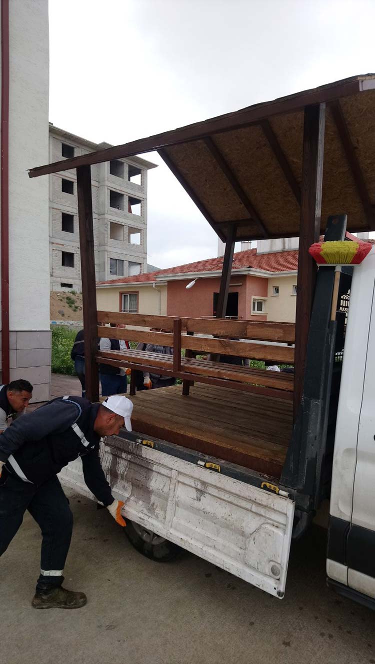 Odunpazarı Belediyesi, Seyitgazi’den gelen istek doğrultusunda okula bank, kamelya ve oyun grubu yaptı. Belediye malzemeleri yerleştirdi, çocuklar üç gün kullandı.