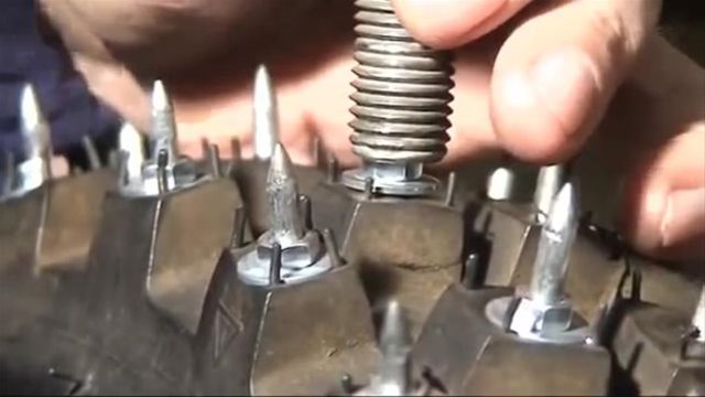 Çiviler ve somunlarla işini halleden adam, sosyal medyadan yayınladığı görüntülerle kısa sürede yoğun ilgi gördü. İşte aşama aşama bir kar lastiği nasıl yapılır...