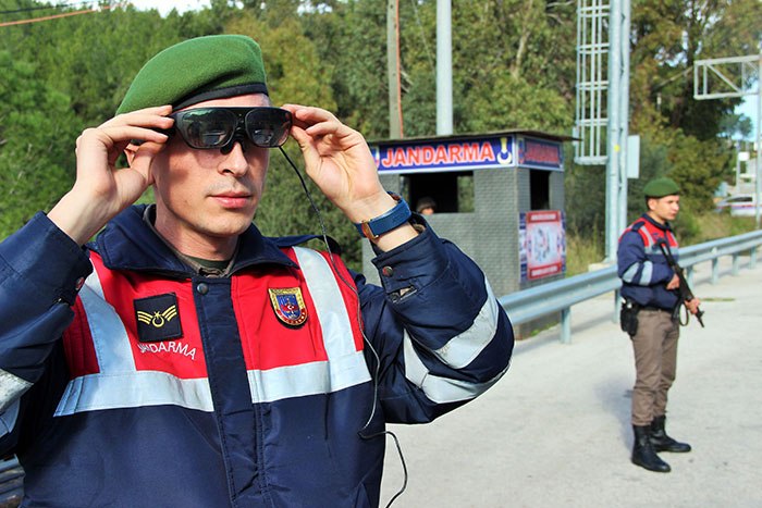 Jandarma Genel Komutanlığı tarafından askerlere dağıtılan 'takbul gözlüğü' sayesinde şüpheliler ve suçlular gözden kaçmayacak. Bodrum’da uygulamaya giren takbul gözlüğüyle kimlik, plaka, yüz ve araç sorgulayan jandarma ekiplerini gören vatandaşlar şaşkınlıklarını gizleyemedi.