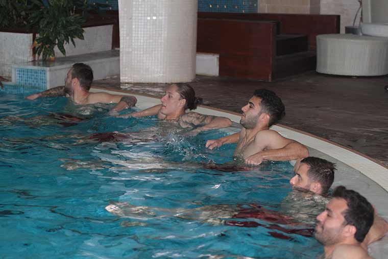 Eskişehirsporlu oyuncular, Antalya Belek'te yaptıkları kampın 7. gününde havuzda kuvvet çalışması yaptı.