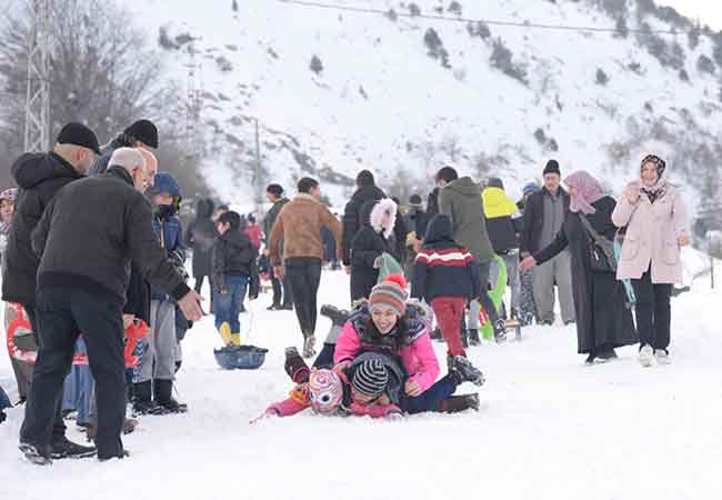 Yarıyıl tatilini fırsat bilen vatandaşlar, Bilecik'in Bozüyük ilçesine bağlı Kandilli köyünde düzenlenen kızak festivalinde katılarak doyasıya eğlendi.