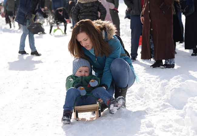 Yarıyıl tatilini fırsat bilen vatandaşlar, Bilecik'in Bozüyük ilçesine bağlı Kandilli köyünde düzenlenen kızak festivalinde katılarak doyasıya eğlendi.