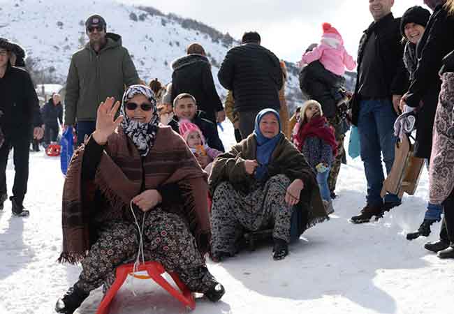 Arkadaşlarıyla kızak kayan 61 Maksudiye Devlez de "Buraya kızak kaymaya geldim. 'Eğlence var' dediler, ben de gençlerden görüp merak edip, katıldım." dedi.