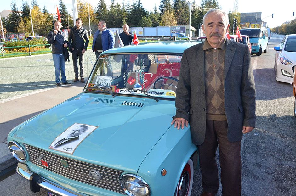 Eskişehir'de klasik otomobilleri ile bir araya gelen sürücüler, saat 09:05'de hep birlikte Ata'ya saygı duruşunda bulundular.