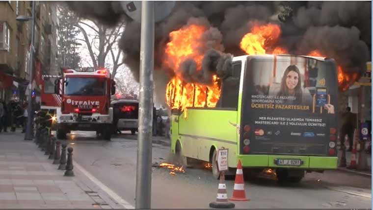 Kaynak: Kocaeli'de halk otobüsü alev alev yandı