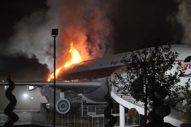 Parkta bulunan ve restoran olarak hizmet veren Airbus A300 tipi uçakta yangın çıktı.