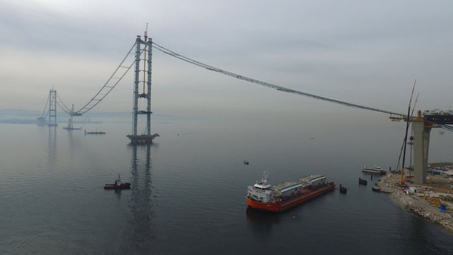 Gebze-Orhangazi-İzmir otoyol projesinin en önemli bölümü olan İzmit Körfez Geçiş Köprüsü inşaatı tüm hızıyla sürüyor. Körfez Köprüsünde 275 metrelik bölüm tamamlandı.