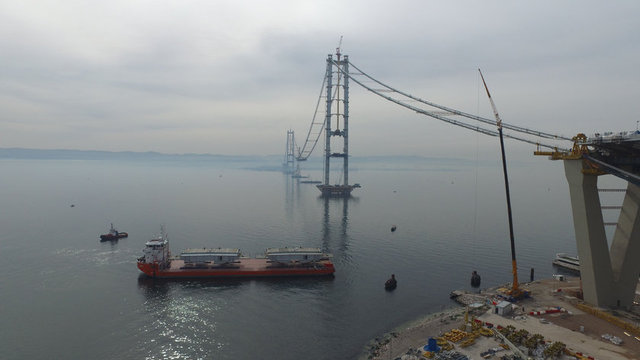 Gebze-Orhangazi-İzmir otoyol projesinin en önemli bölümü olan İzmit Körfez Geçiş Köprüsü inşaatı tüm hızıyla sürüyor. Körfez Köprüsünde 275 metrelik bölüm tamamlandı.