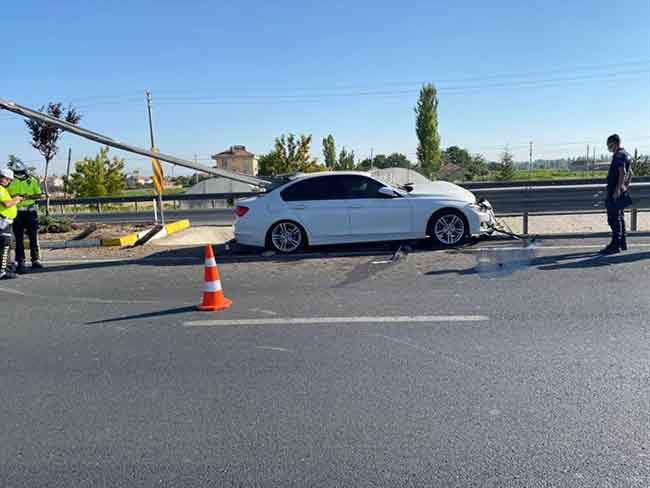 Konya'nın Akşehir ilçesinde refüjdeki korkuluklara çarpan araçtaki 3 kişi yaralandı.