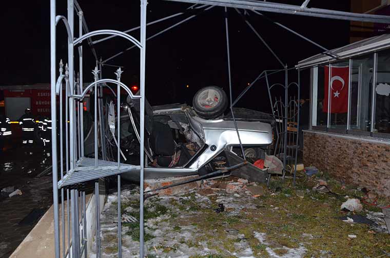 Eskişehir'de bir otomobilin bahçe duvarına çarpması sonucu iki kişi öldü, bir kişi yaralandı.