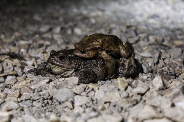 Kütahya'nın Domaniç ilçesinde, bulgulara göre yaklaşık 5 bin yıldır çiftleşmek için göç eden kurbağalar, Domaniç-İnegöl karayolundan hızla geçen araçların arasından birbirlerinin sırtında karşıya geçiyor.
