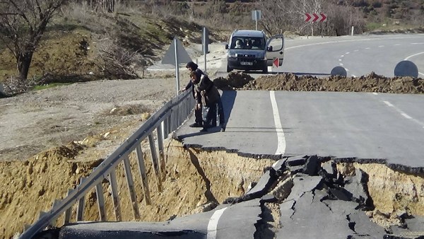 Kütahya'da Emet-Tavşanlı karayolunun çökmesi sonucu 3 metre derinliğinde ve 30 metre genişliğinde dev bir çukur oluştu.
