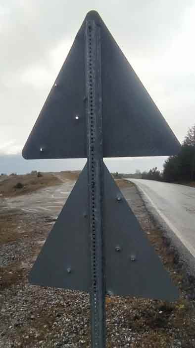 Kütahya'da, karayollarındaki trafik yön ve işaretlemeleri için kullanılan levhalar silahlı magandaların hedef tahtası haline geldi.