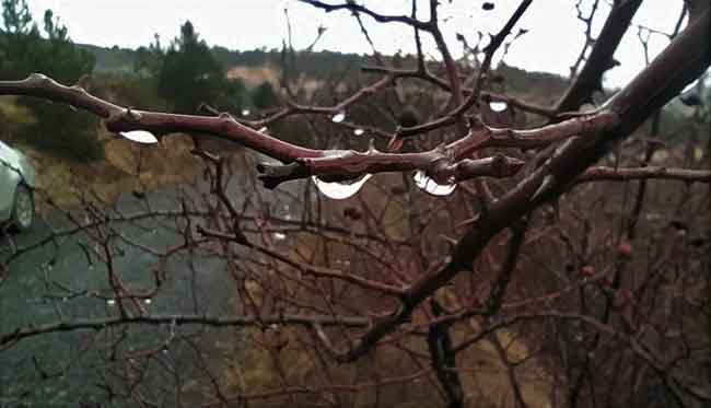 Kütahya'da yağmur sonrası ağaçlar ve meyveleri üzerindeki damlacıklar, görsel şölen oluşturdu.