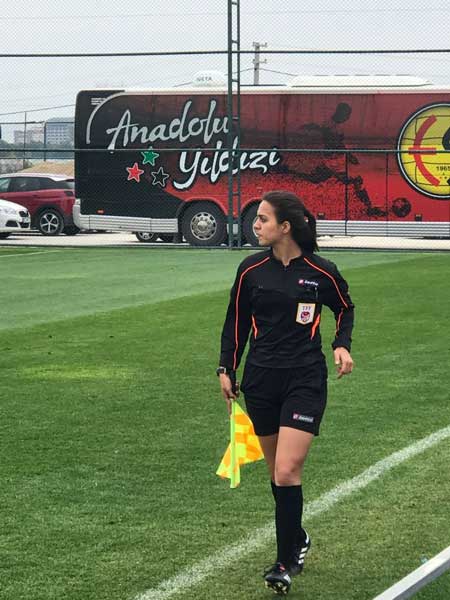 Adana Demirspor ile Eskişehirspor arasında oynanan hazırlık karşılaşmasına kadın hakem Hümeyra Çelik damga vurdu