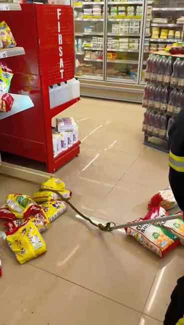 Olay, Başiskele ilçesinde bir zincir markette meydana geldi. Edinilen bilgiye göre, alışveriş yapmak için Başiskele’de bulunan zincir marketin şubesine giden vatandaşlar, raflar arasında gezinirken ürünlerin arasında yılan olduğunu fark etti.