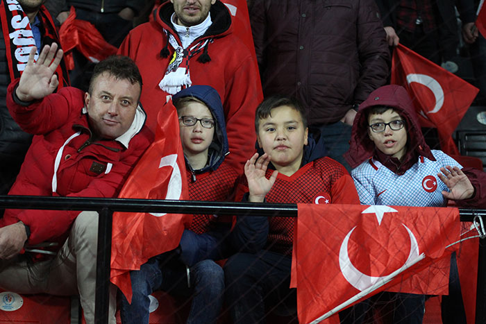 Eskişehir'de ilk kez bir milli maç oynayan A Milli Futbol Takım'ın Moldova ile karşılaştığı mücadelede taraftarlar Eskişehir Yeni Stadyumunu tıklım tıklım doldurdu.