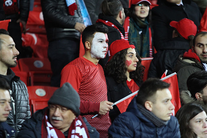 Eskişehir'de ilk kez bir milli maç oynayan A Milli Futbol Takım'ın Moldova ile karşılaştığı mücadelede taraftarlar Eskişehir Yeni Stadyumunu tıklım tıklım doldurdu.