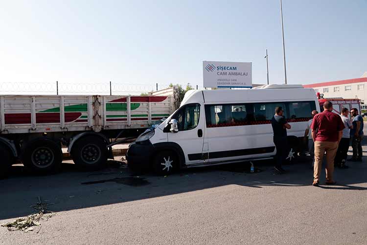Eskişehir'de işçileri taşıyan servis minibüsünün park halindeki tıra arkadan çarpması sonucu 17 kişi yaralandı.