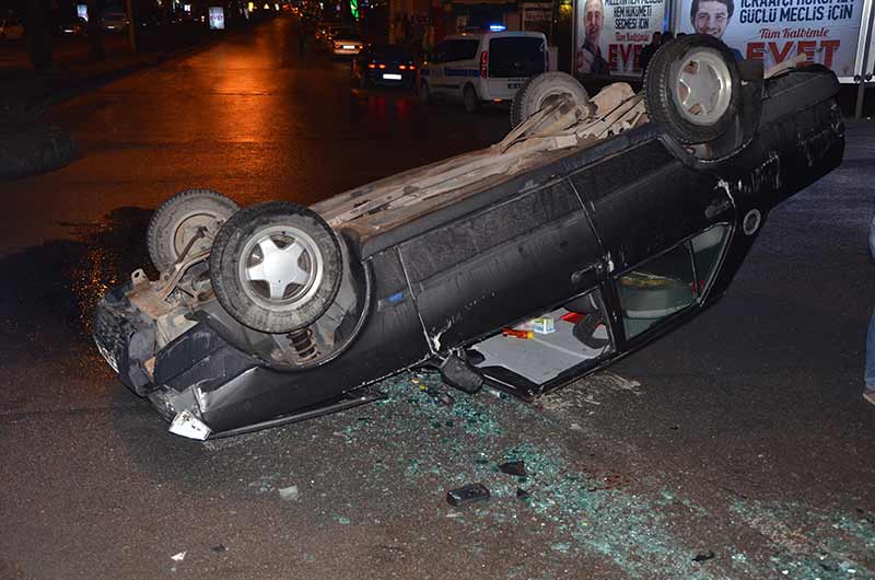 Eskişehir'de kayganlaşan yolun etkisiyle takla atan otomobilde bulunan 2 kişi, kazayı ufak sıyrıklarla atlattı.