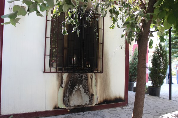 Eskişehir'de konteynerden yapılmış Mamure Mahalle Muhtarlığı binasının yakılmaya çalışıldığı iddia edildi.