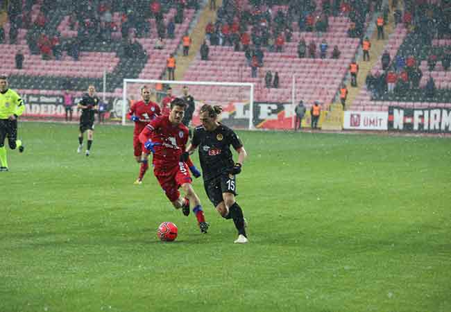 TFF 1. Lig’in 21. haftasında Eskişehirspor sahasında konuk ettiği Altınordu’yu 3-0 mağlup etti. Muhteşem bir performans sergileyen 'Bizim Çocuklar' yoğun kar yağışı ve soğuğa rağmen pes etmedi. Son dakikaya kadar mücadeleye devam eden Eskişehirsporlu futbolcular, bu galibiyeti alabilmek için ellerinden gelenin en iyisini yaptılar. İşte bu unutulmaz karşılaşmadan sizin için seçtiğimiz kareler...