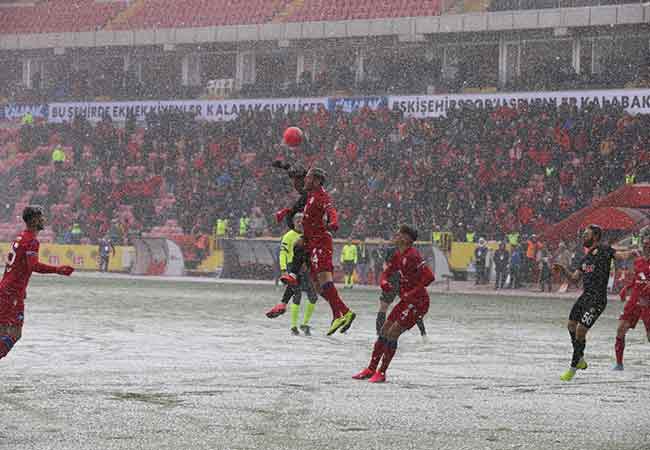 TFF 1. Lig’in 21. haftasında Eskişehirspor sahasında konuk ettiği Altınordu’yu 3-0 mağlup etti. Muhteşem bir performans sergileyen 'Bizim Çocuklar' yoğun kar yağışı ve soğuğa rağmen pes etmedi. Son dakikaya kadar mücadeleye devam eden Eskişehirsporlu futbolcular, bu galibiyeti alabilmek için ellerinden gelenin en iyisini yaptılar. İşte bu unutulmaz karşılaşmadan sizin için seçtiğimiz kareler...