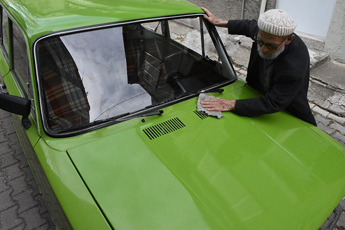 Bilecik'te yaşayan 83 yaşındaki Celil Gülen, 22 yıl önce bir akrabasından satın aldığı 1975 model, tüm parçaları orijinal Murat 124 model otomobiline özenle bakıyor.
