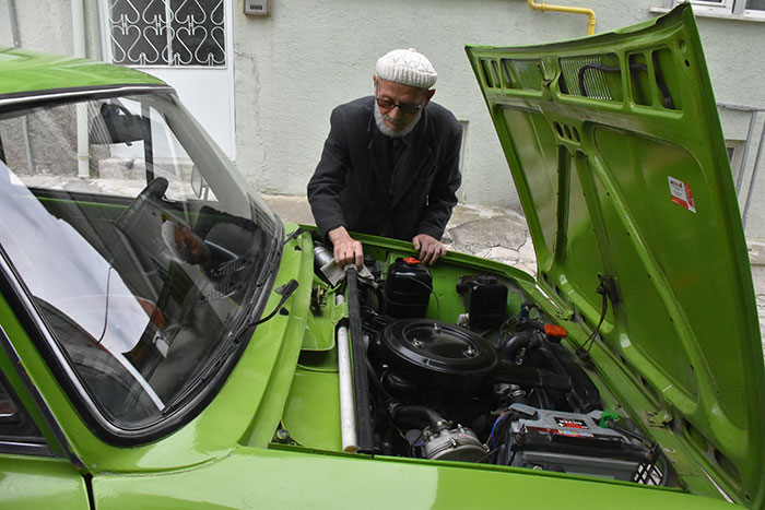 Bilecik'te yaşayan 83 yaşındaki Celil Gülen, 22 yıl önce bir akrabasından satın aldığı 1975 model, tüm parçaları orijinal Murat 124 model otomobiline özenle bakıyor.