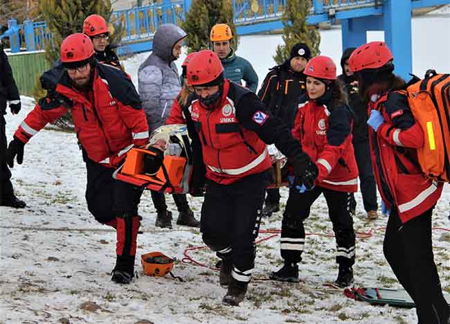 Eskişehir’de Ulusal Medikal Kurtarma Ekibi (UMKE) önderliğinde Afet ve Acil Durum Yönetimi Başkanlığı (AFAD), Eskişehir Emniyet Müdürlüğü, İl Sağlık Müdürlüğü ve Büyük Ayı Arama ve Kurtarma Derneği işbirliğinde yapılan ‘Buzda Kurtarma Tatbikatı’ nefesleri kesti.