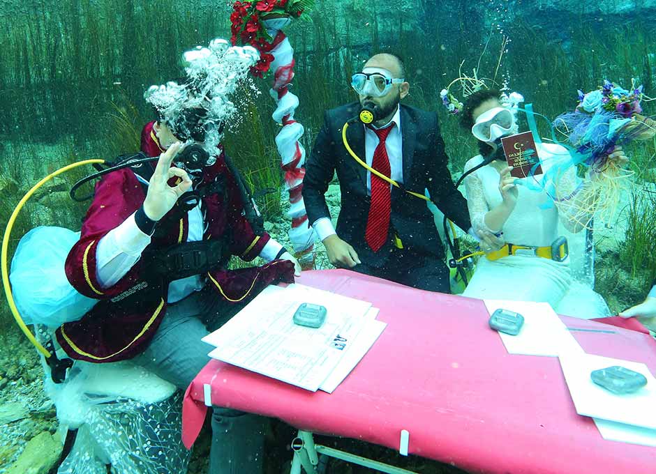 NİKAHI SUYUN ALTINDA KIYDILAR