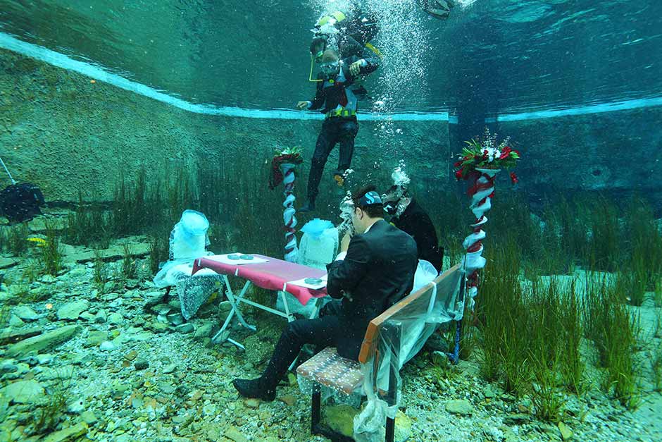 NİKAHI SUYUN ALTINDA KIYDILAR