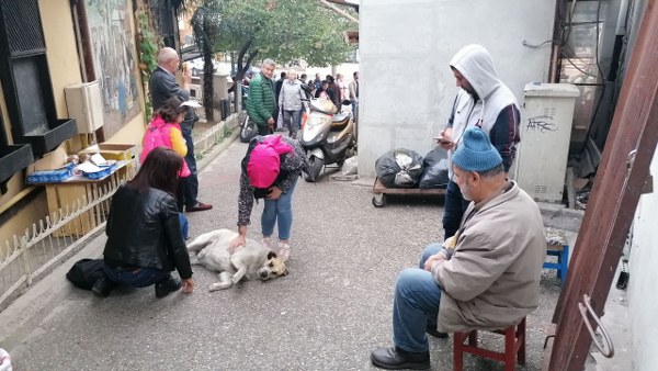 Köpeğin sağlıklı olduğuna kanaat getiren kadınlar, bir süre sonra köpeğin yanından ayrıldı. Sevimli köpek ise bir müddet daha yattıktan sonra gözden kayboldu.
