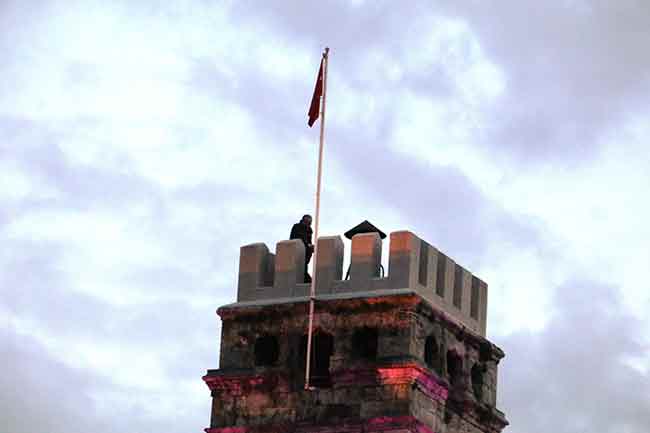 Antalya’da bunalıma giren bir kişi, tarihi Kaleiçi girişindeki Saat Kulesi’ne çıkarak intihar girişiminde bulundu. Polisin yarım saatlik çabasının ardından ikna edilen yaşlı adam, bu defa çıktığı yerden inemeyince devreye itfaiye merdiveni girdi. Yaşlı adam, yerli ve yabancı turistlerin şaşkın bakışları içerisinde itfaiye merdiveniyle kuleden indirildi.