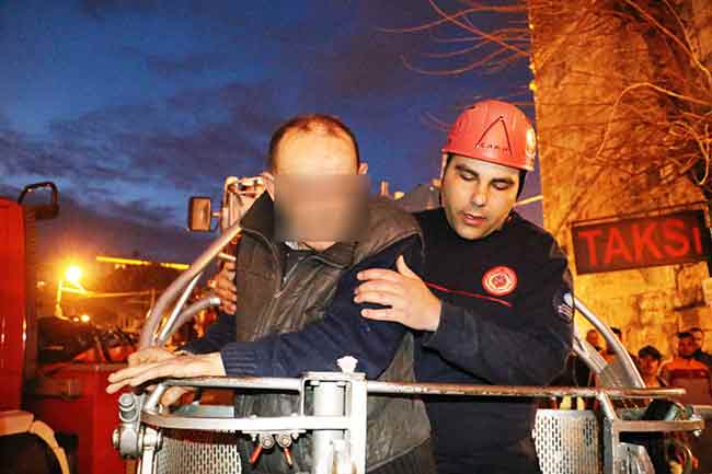 Polisin yaklaşık yarım saatlik çabası sonrası yaşlı adam, ikna edildi ancak çıktığı merdivenlerden inemeyince devreye Antalya Büyükşehir belediyesi itfaiye ekipleri girdi.