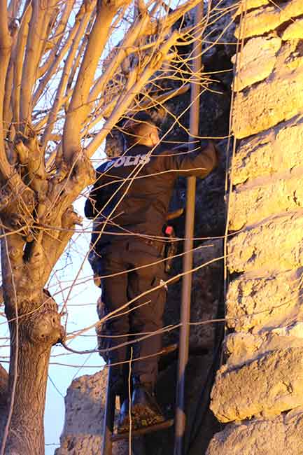 Yaşlı adam, olay yerine çağrılan itfaiye merdiveniyle bulunduğu yerden alınıp aşağı indirildi.