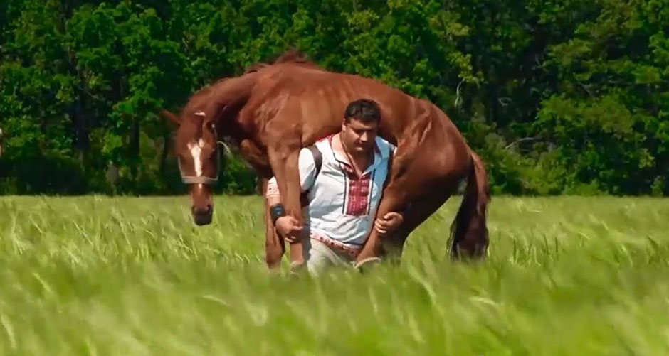 Kilosu 400 çivarında olan atları sırtına alıp yürüyen Dmitriy Khaladzhi, korkunç bir güce sahip.