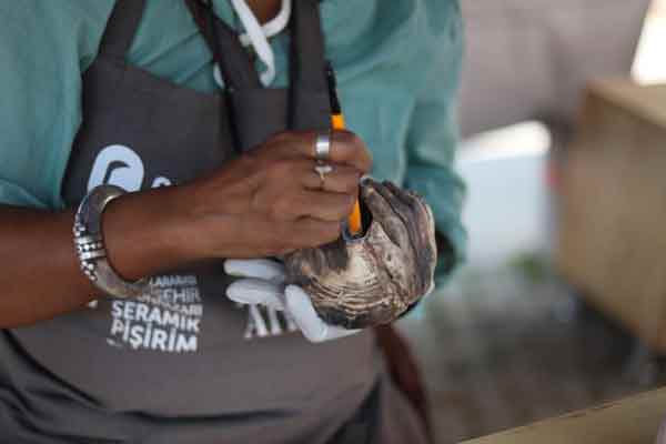 Çalıştay alanına gelen çocuklar seramik hamuruna şekil verirken, vatandaşlar da tornada seramikten çömlek yaptı.