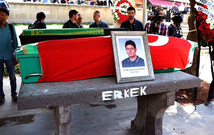 Eskişehir Osmangazi Üniversitesi (ESOGÜ) Eğitim Fakültesi'nde bir araştırma görevlisinin silahlı saldırısı sonucu yaşamını yitiren Dr. Öğr. Üyesi Serdar Çağlak'ın (33) cenazesi, memleketi Kayseri'de defnedildi.