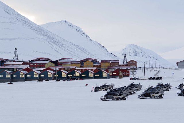 Kuzeyde 78. paralel üzerindeki Longyearbyen, Norveç'in kuzey sahili ile Kuzey Kutbu arasındaki Svalbard takımadalarından birinin üzerinde